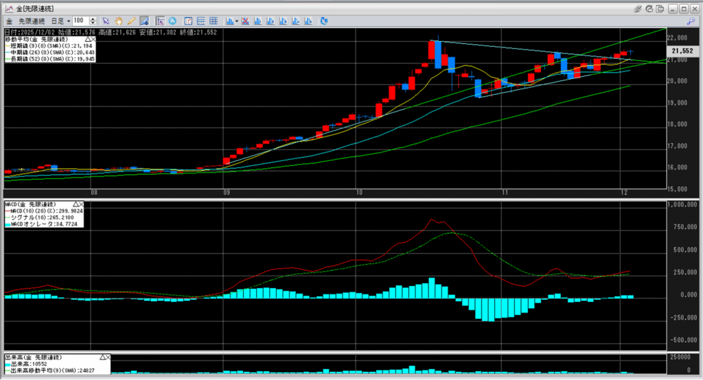 下記に金白金鞘の移動平均線のチャートを貼り付けています。