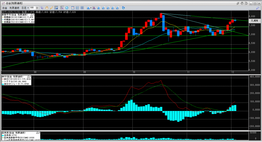 今度は7,500円をサポートラインとして、白金上昇が続いていくのか。