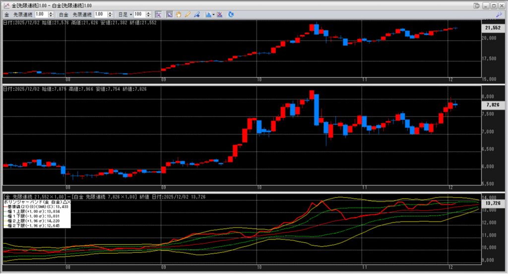 金白金の鞘をボリンジャーバンドで見ていきます。