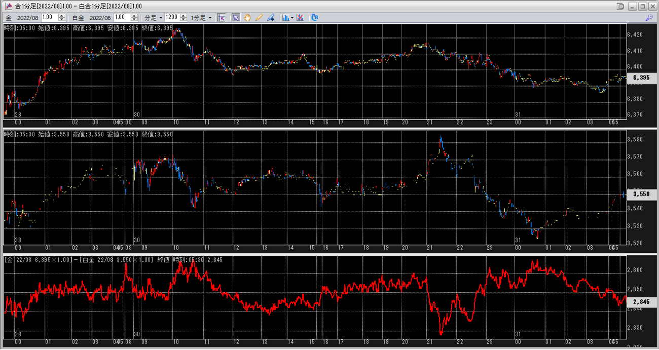 中:大阪取引所 白金 2022年8月限 1分足