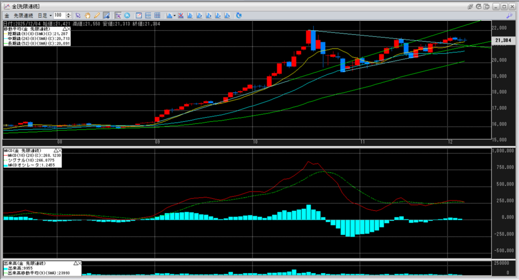 下記に金白金鞘の移動平均線のチャートを貼り付けています。