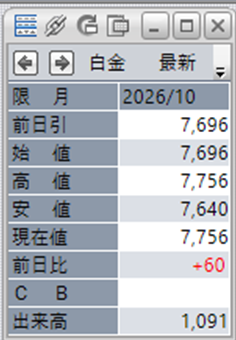 今度は7,500円をサポートラインとして、白金上昇が続いていくのか。