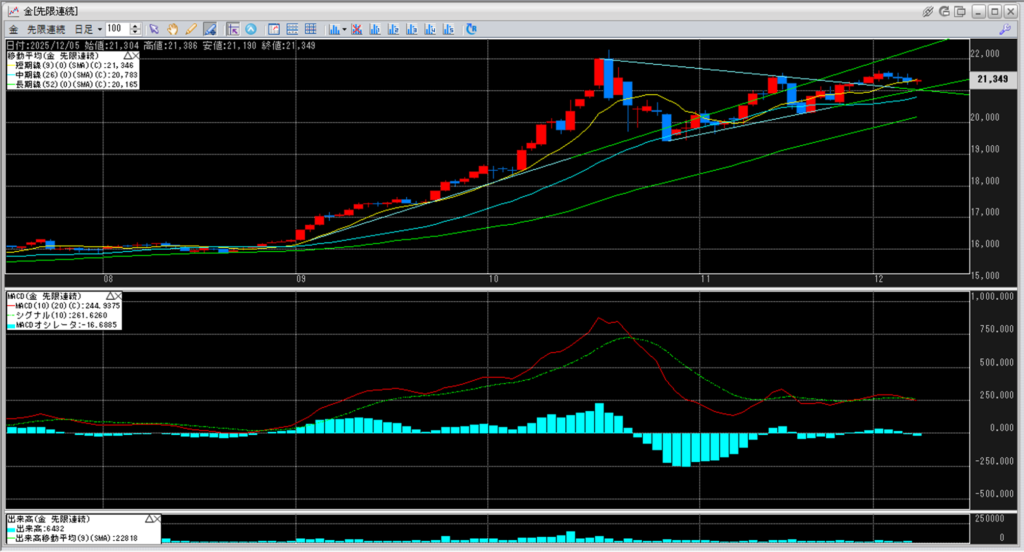 下記に金白金鞘の移動平均線のチャートを貼り付けています。