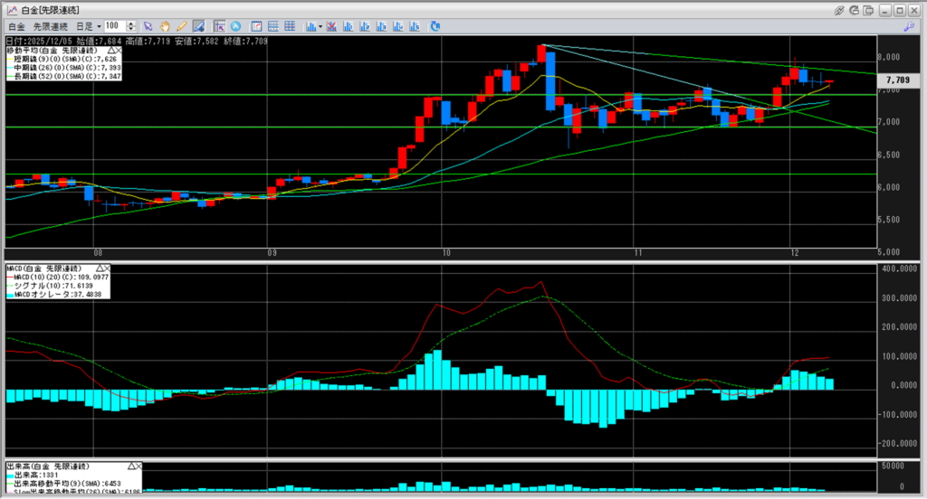 今度は7,500円をサポートラインとして、白金上昇が続いていくのか。