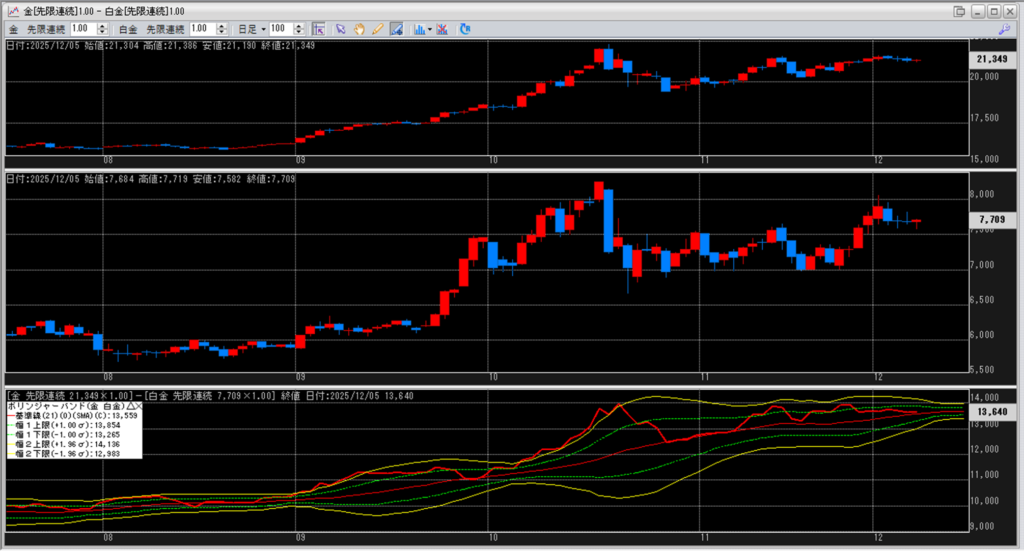 金白金の鞘をボリンジャーバンドで見ていきます。