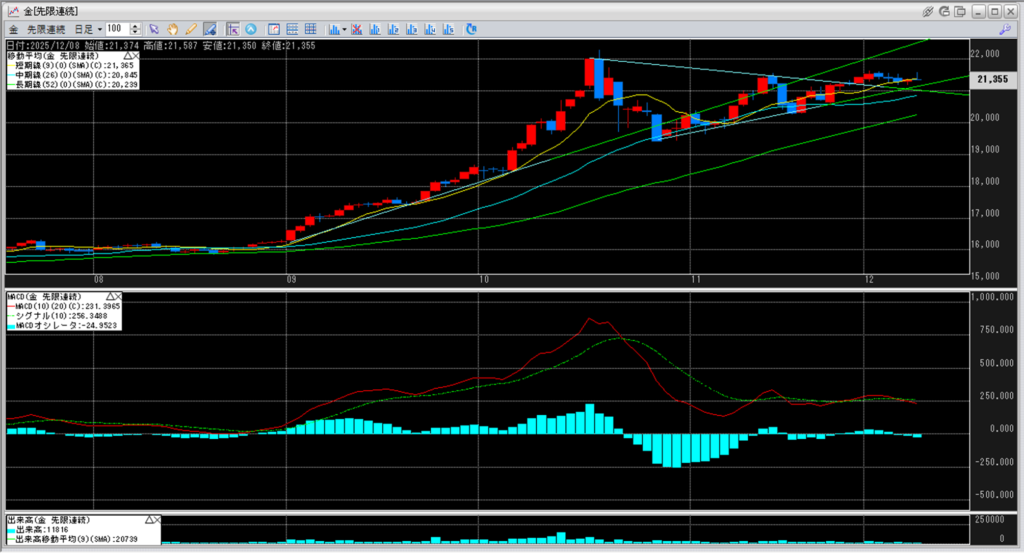 下記に金白金鞘の移動平均線のチャートを貼り付けています。
