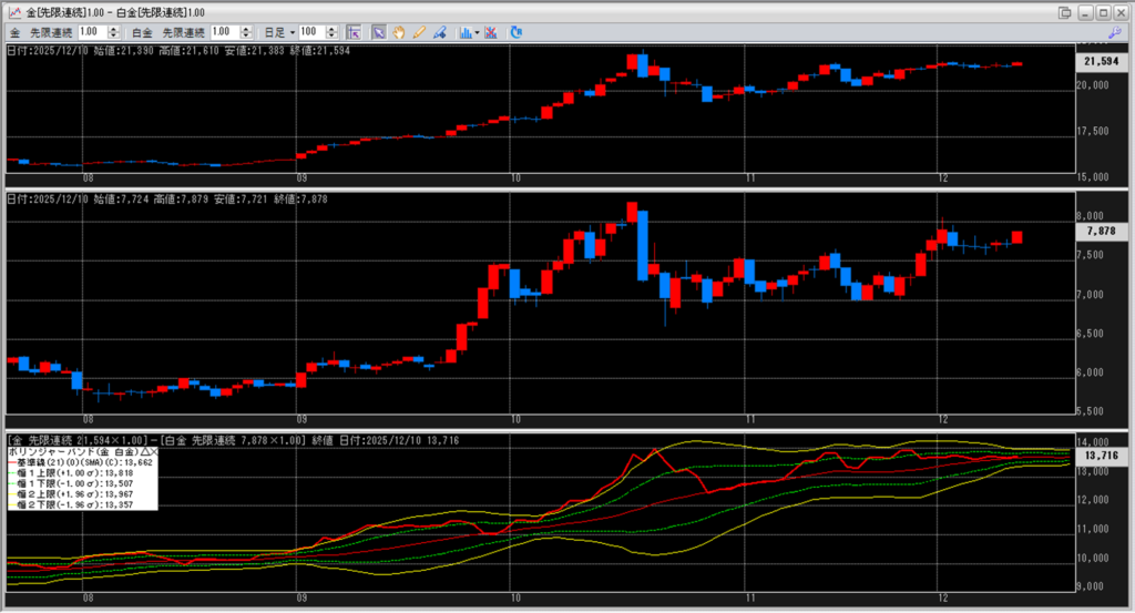 金白金の鞘をボリンジャーバンドで見ていきます。