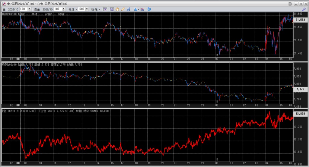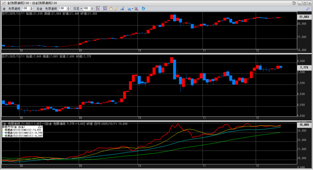 下記に金白金鞘の移動平均線のチャートを貼り付けています。