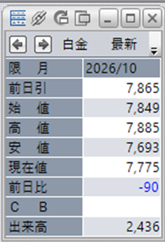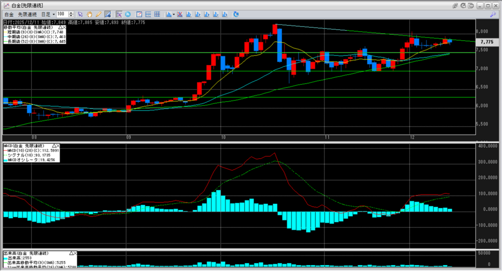 今度は7,500円をサポートラインとして、白金上昇が続いていくのか。