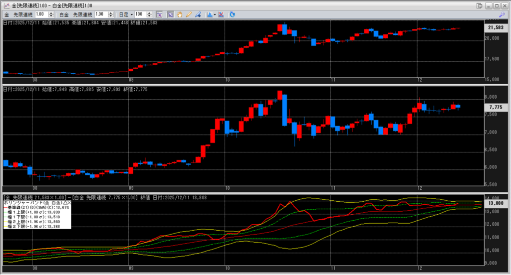 金白金の鞘をボリンジャーバンドで見ていきます。