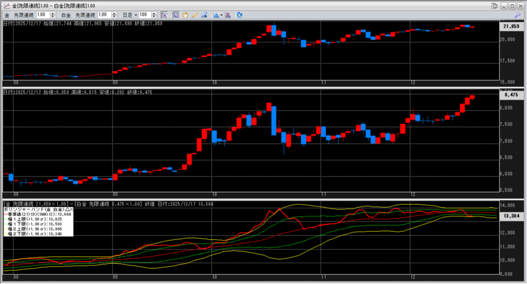 金白金の鞘をボリンジャーバンドで見ていきます。