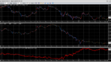 移動平均は、短期線は上向き、中期線は下向き、長期線はヨコヨコになっています。
