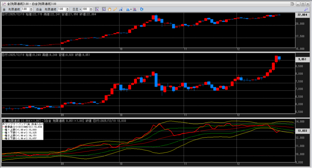 金白金の鞘をボリンジャーバンドで見ていきます。