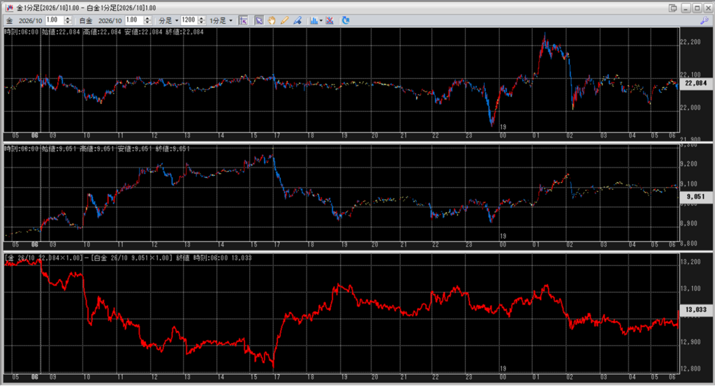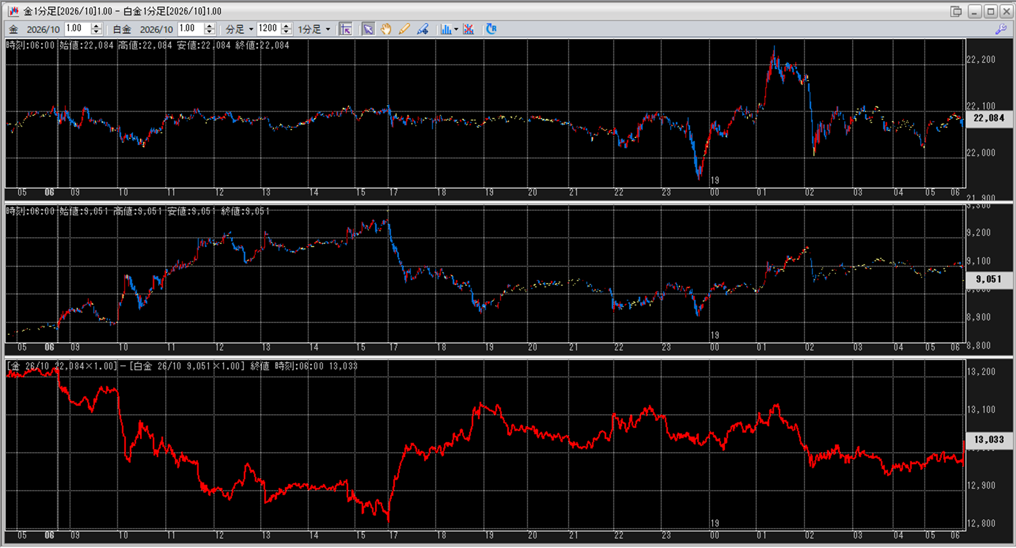 下:金白金鞘(金白金の価格差 = 金1グラムの価格 - 白金1グラムの価格)