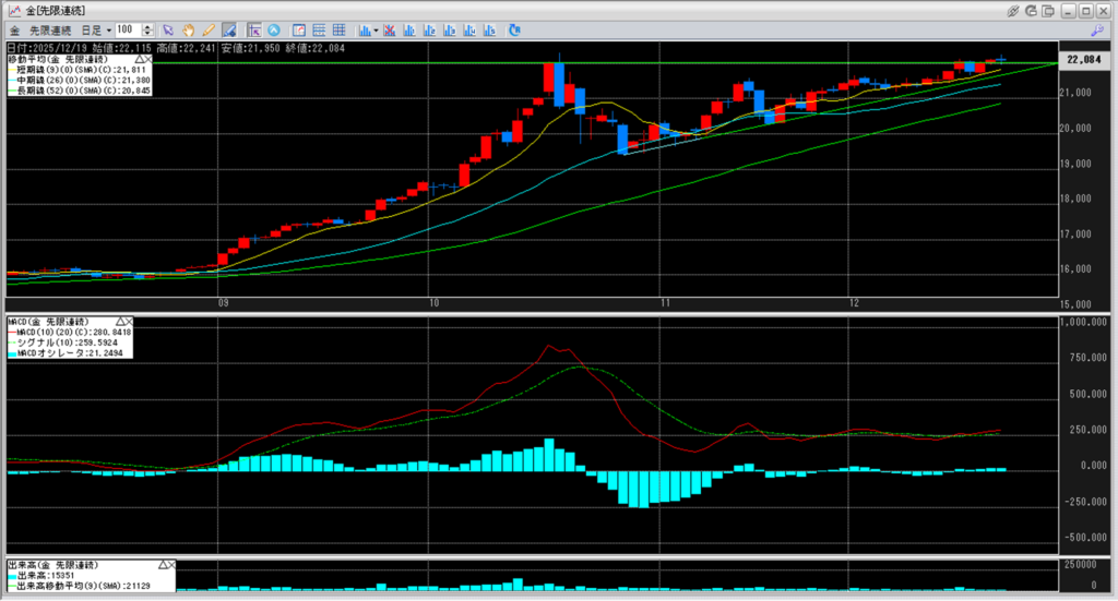 下記に金白金鞘の移動平均線のチャートを貼り付けています。
