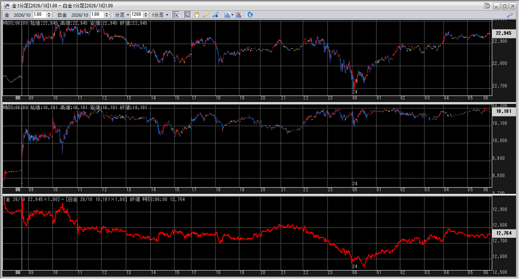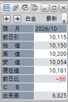 中:大阪取引所 白金 2026年10月限 1分足