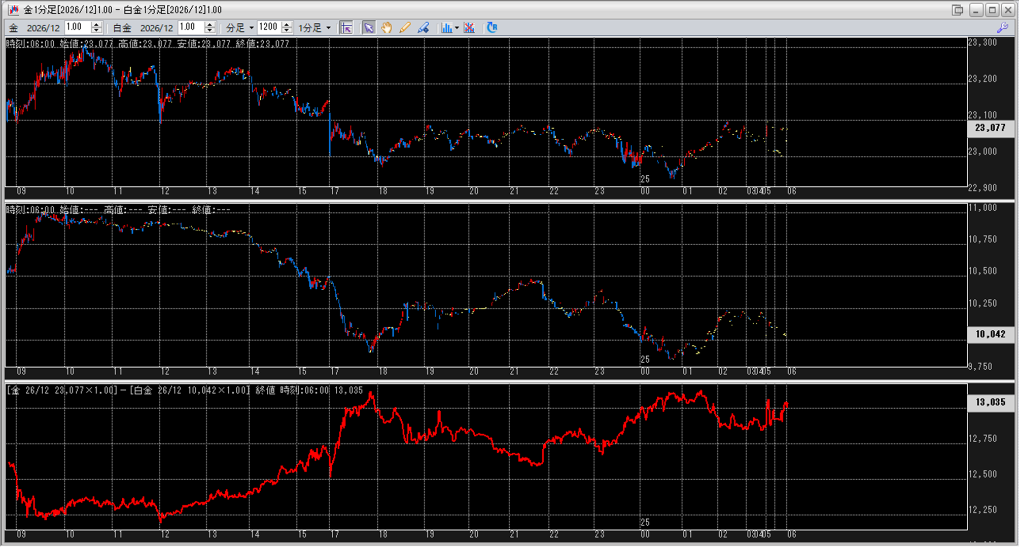 金価格は、6:00時点での終値は23,077円となっています。