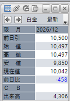 白金単体で見ると、前日比で-458円となっております。