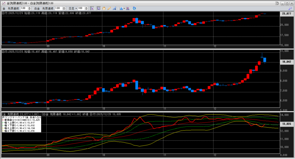 金白金の鞘をボリンジャーバンドで見ていきます。