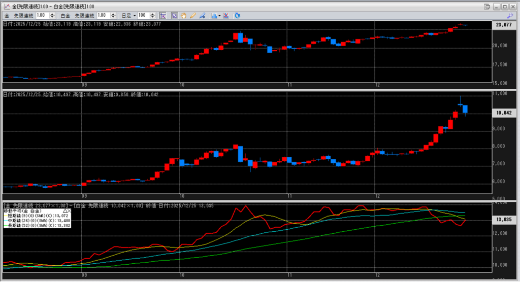 下記に金白金鞘の移動平均線のチャートを貼り付けています。