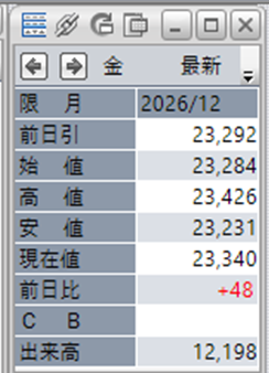 金価格は、6:00時点での終値は23,340円となっています。
