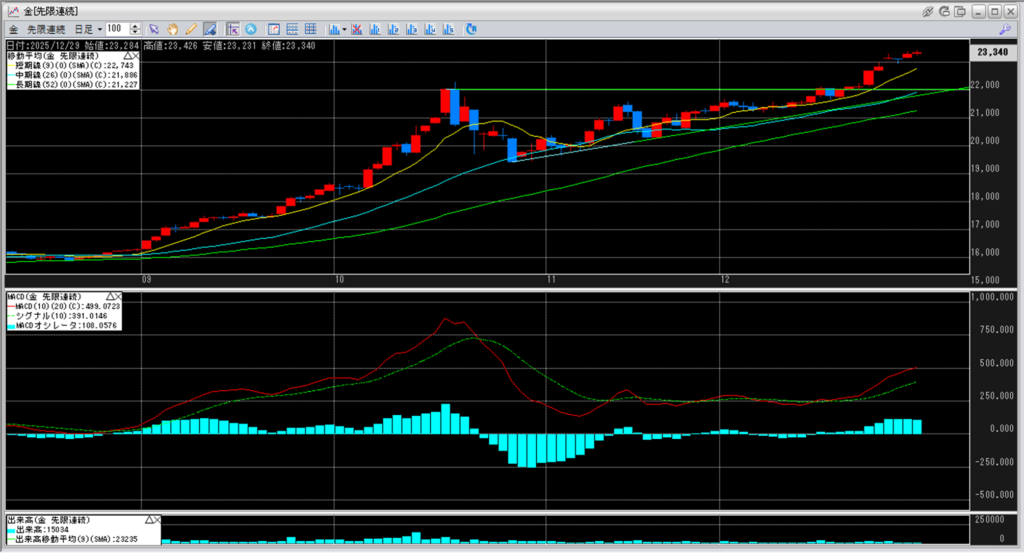 金価格は23,000円台を維持しています。