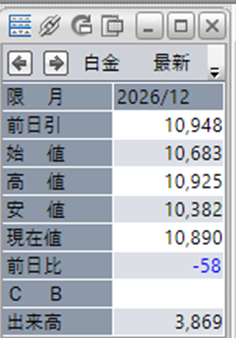 白金単体で見ると、前日比で-58円となっております。