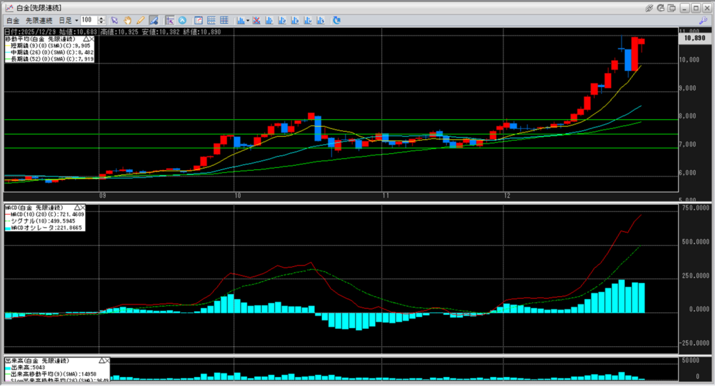 中:大阪取引所 白金 2026年12月限 1分足