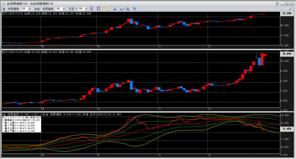 金白金の鞘をボリンジャーバンドで見ていきます。