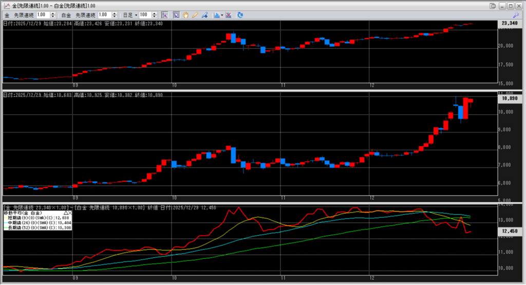 下記に金白金鞘の移動平均線のチャートを貼り付けています。