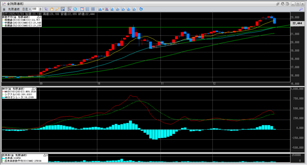 金価格の史上最高値は23,426円のままとなっています。