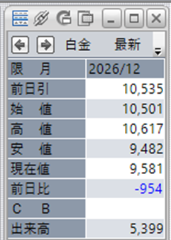 白金単体で見ると、前日比で-954円となっております。