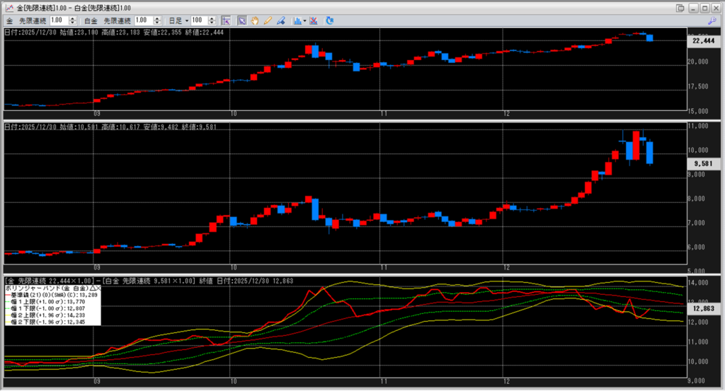 金白金の鞘をボリンジャーバンドで見ていきます。