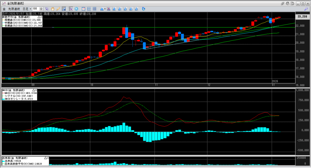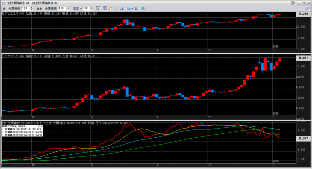 下記に金白金鞘の移動平均線のチャートを貼り付けています。