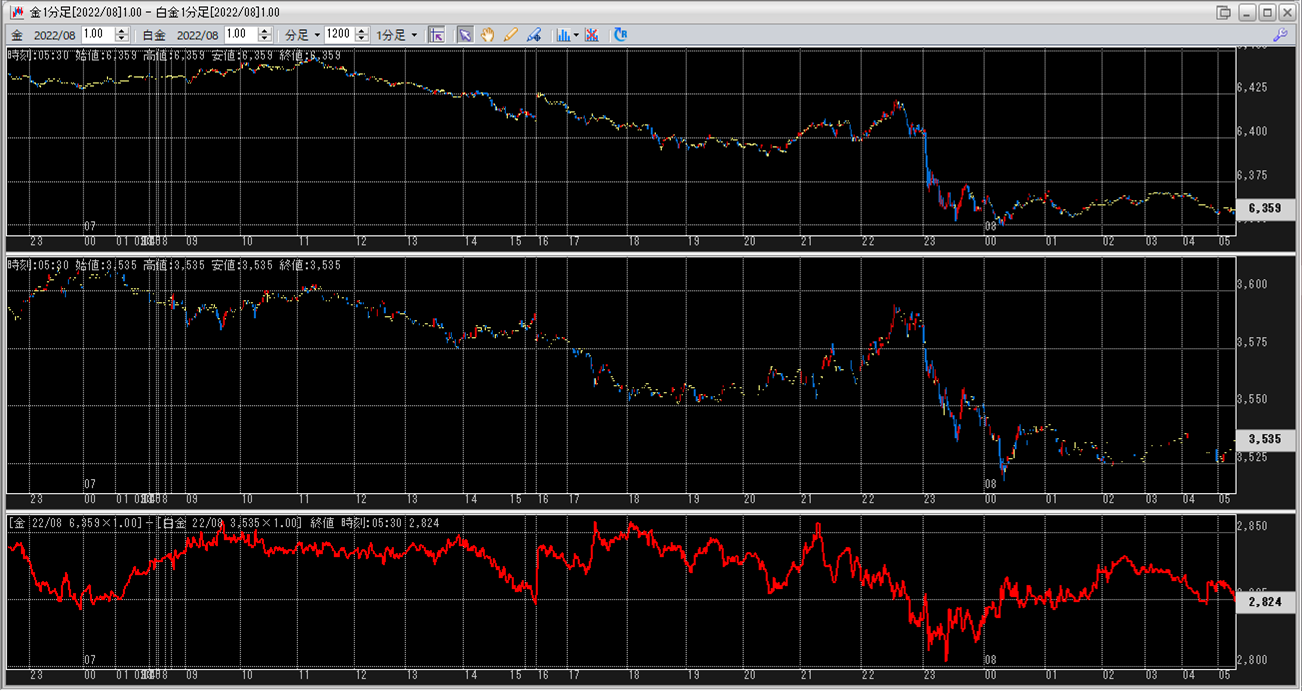 2021年9月7日8:45~9月8日5:30 金白金鞘値動きのチャートを張り付けています。