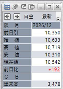白金単体で見ると、前日比で+192円となっております。