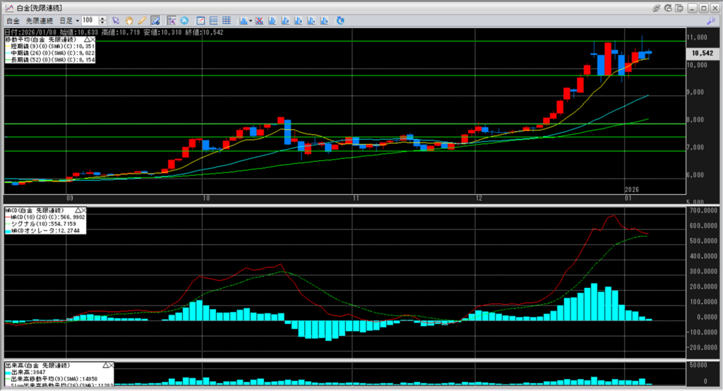 白金のチャートを見ると、
