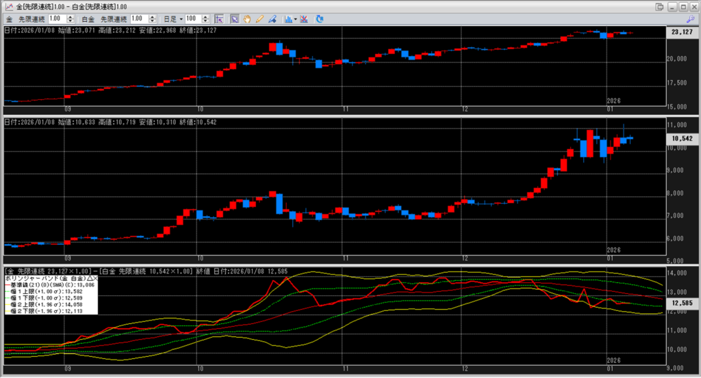 金白金の鞘をボリンジャーバンドで見ていきます。
