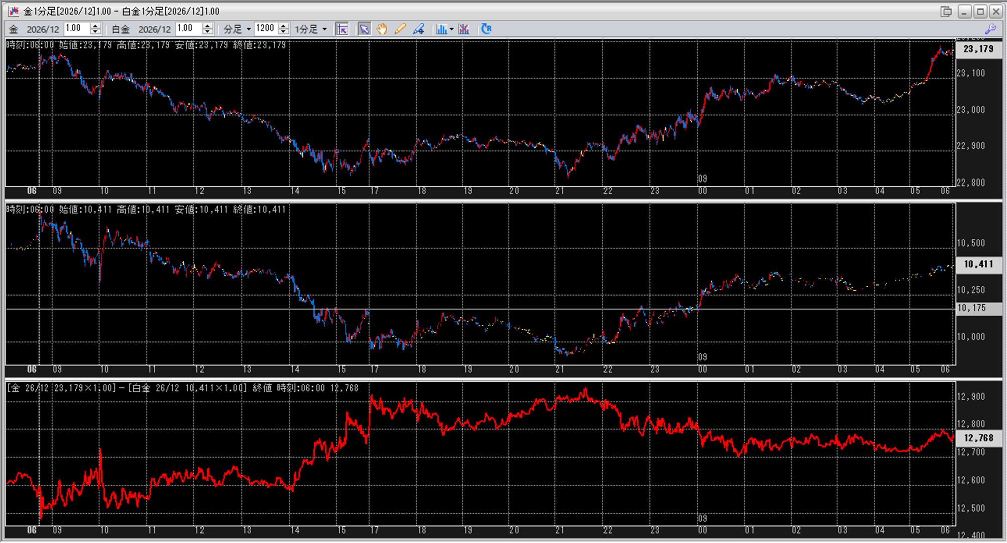 12,443円を超え続け、金白金鞘は拡大していくのか。