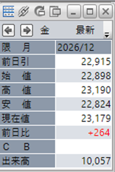 -1σである12,580円を越えた12,768円で6:00の取引を終えています。