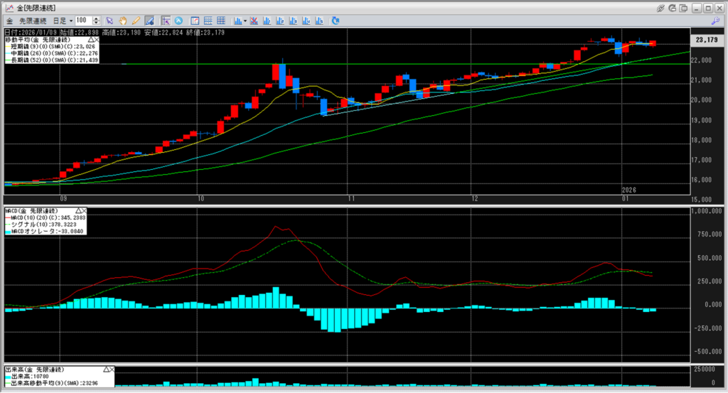 下記に金白金鞘の移動平均線のチャートを貼り付けています。