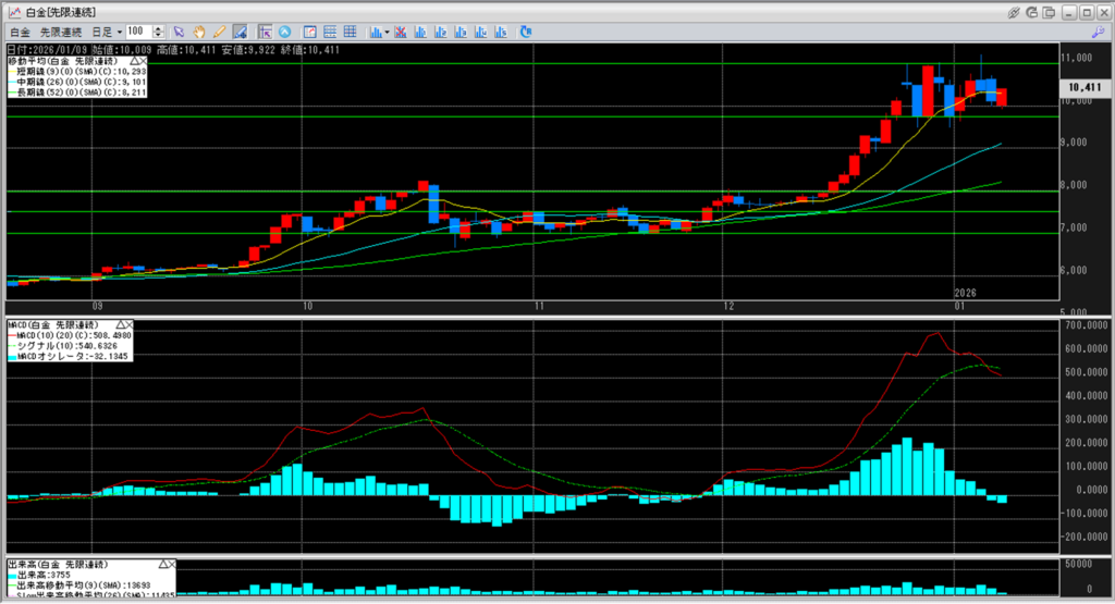 9,750円を割り込まなければ、まだ白金価格の上昇は続きそうには見えます。