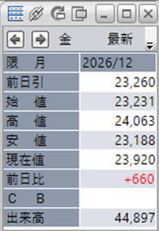 上:大阪取引所 金 2026年12月限 1分足