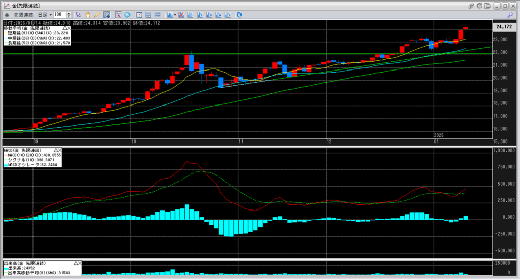 上:大阪取引所 金 2026年12月限 1分足