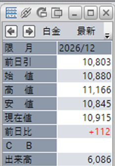 中:大阪取引所 白金 2026年12月限 1分足