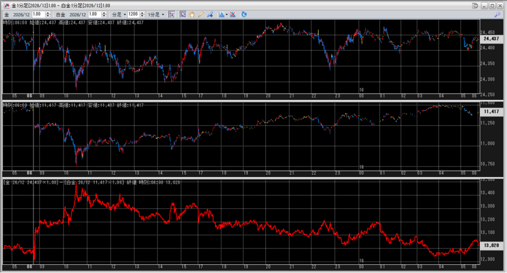 下:金白金鞘(金白金の価格差 = 金1グラムの価格 - 白金1グラムの価格)