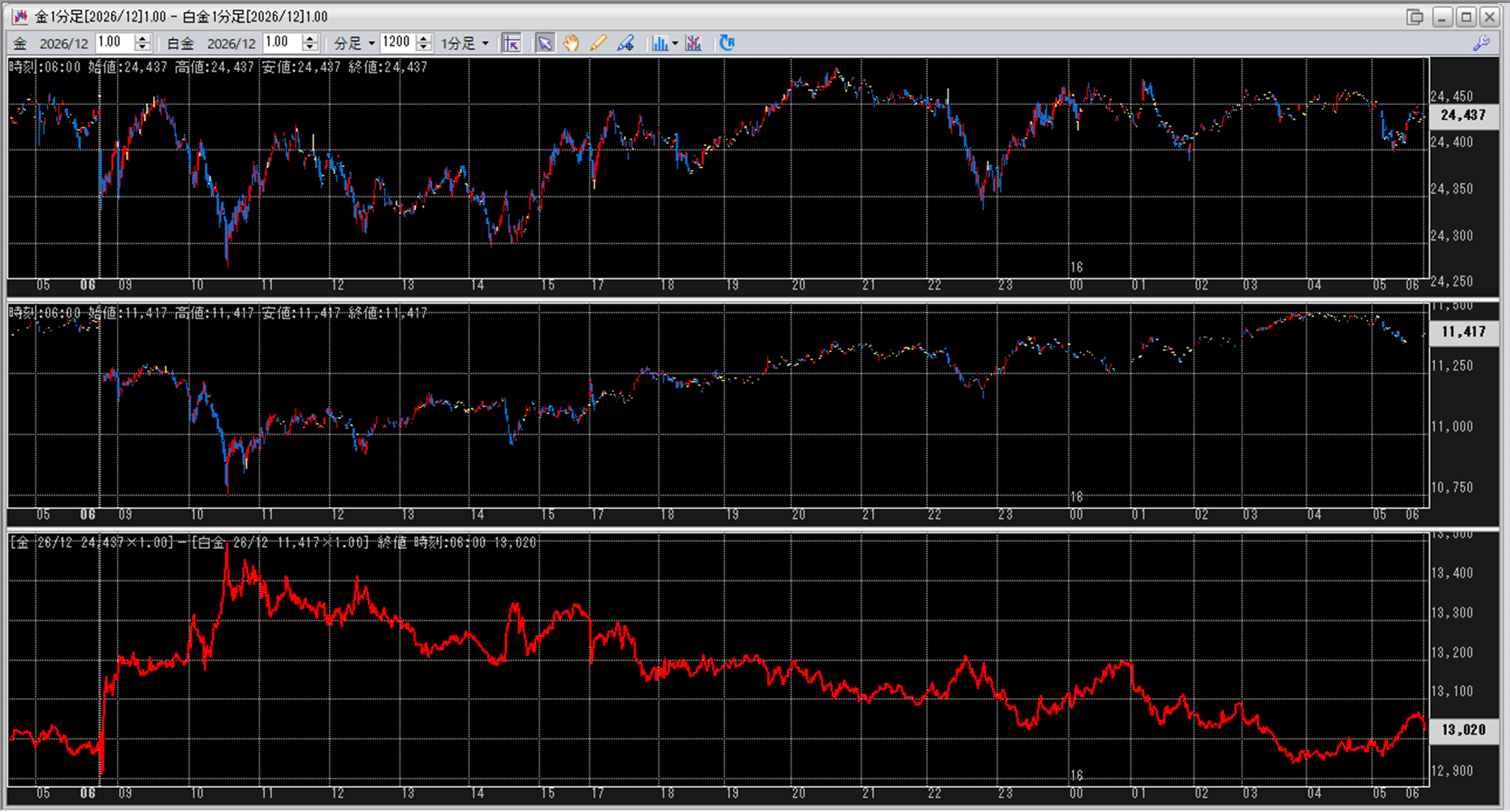 12,443円を超え続け、金白金鞘は拡大していくのか。