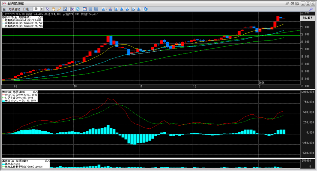 下記に金白金鞘の移動平均線のチャートを貼り付けています。