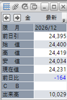 上:大阪取引所 金 2026年12月限 1分足