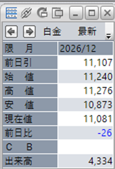 白金単体で見ると、前日比で-26円となっております。